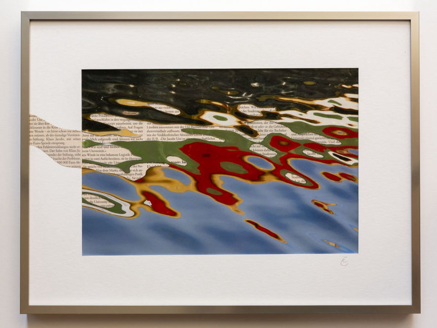 Diese Collage aus einer Fotografie und einer Tageszeitung ist hinter einem Passepartout auf einem Hintergrundkarton aufgebracht. Das Finish genügt hohen konservatorischen Ansprüchen für Fotokunstwerke - alles in einem zeitlosen Magnetrahmen (40 x50 cm).
